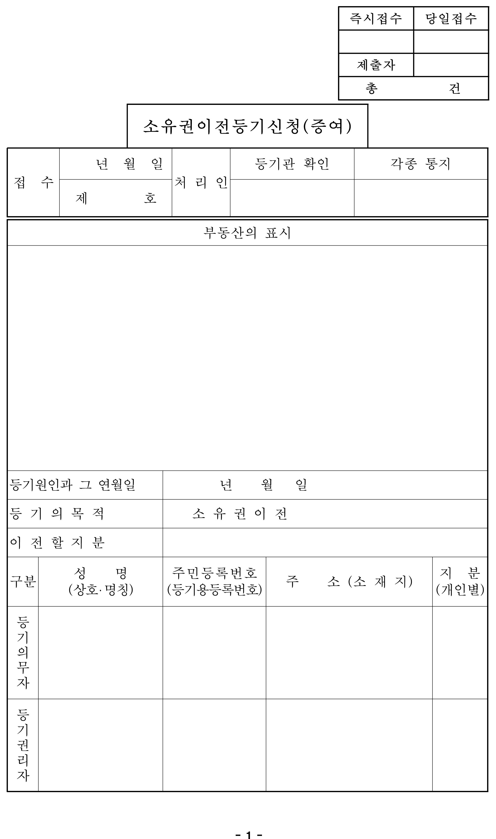 증여로 인한 부동산 소유권 이전 등기신청