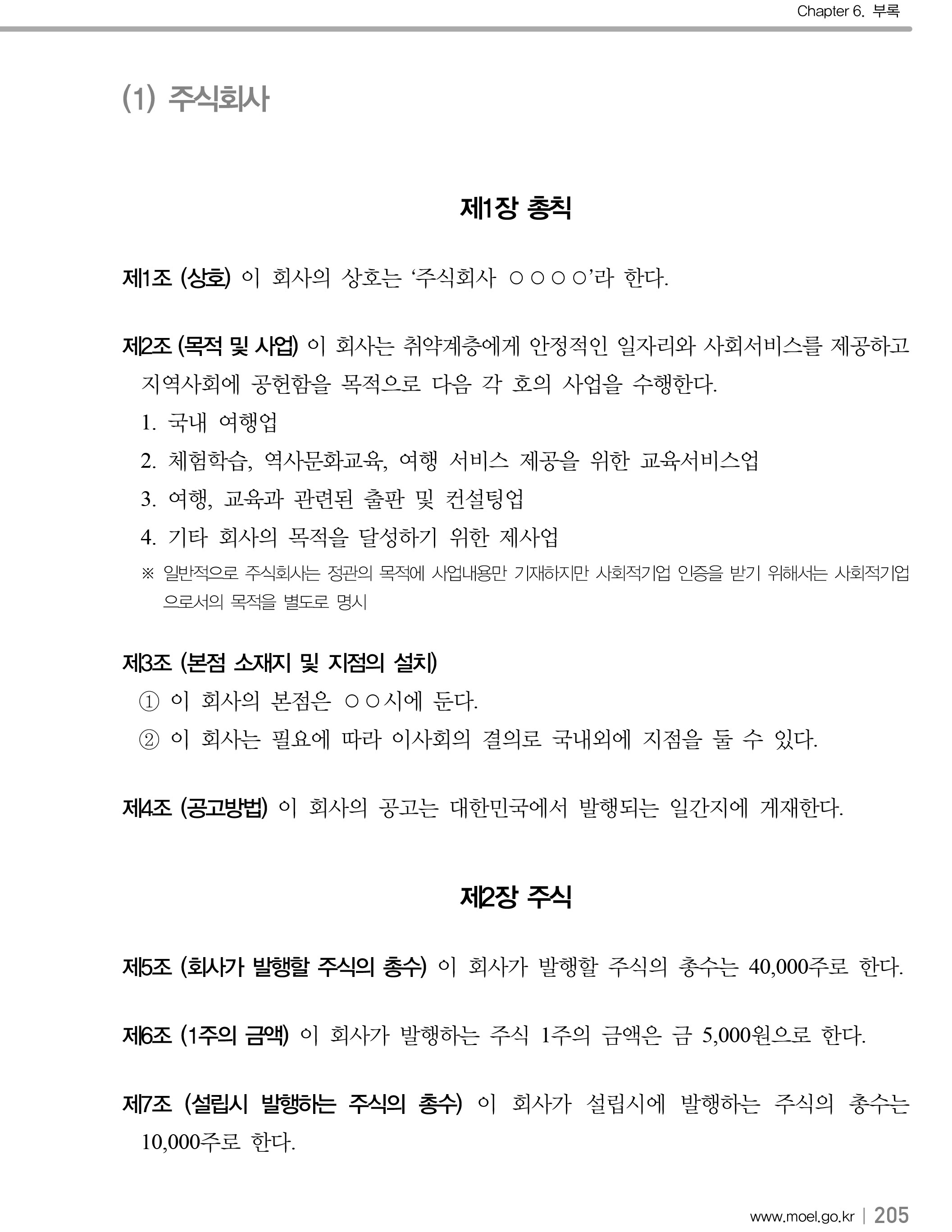 각 기업 형태별 사회적기업 정관 샘플입니다.