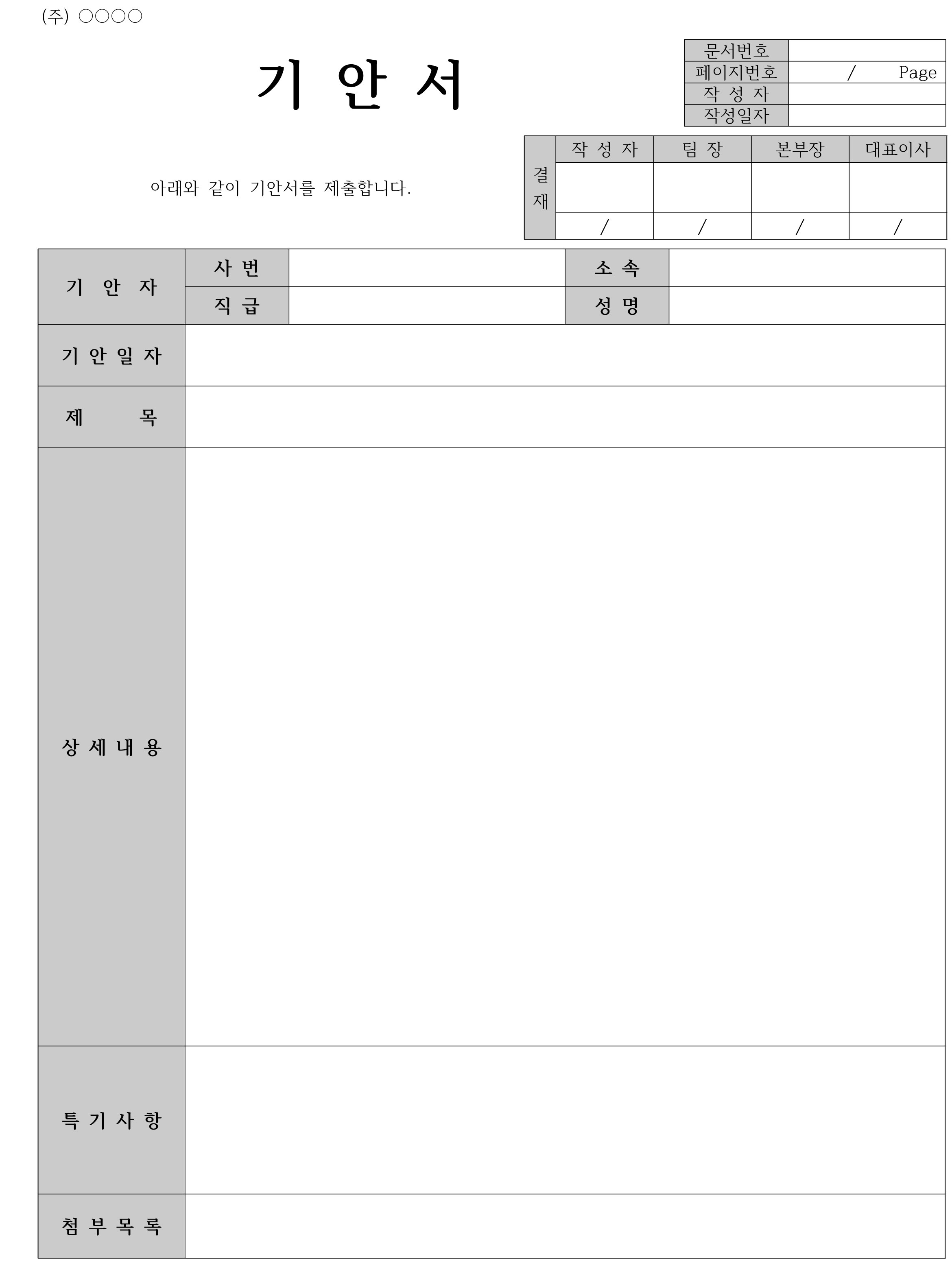 저희 회사에서 사용하고 있는 기안서 양식입니다.