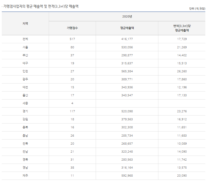 전체 가맹점 517개, 직영점 1개를 운영하고 있습니다.