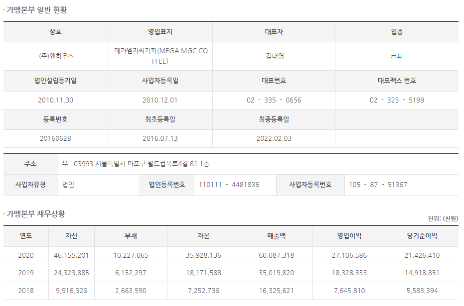 메가MGC커피 프랜차이즈
