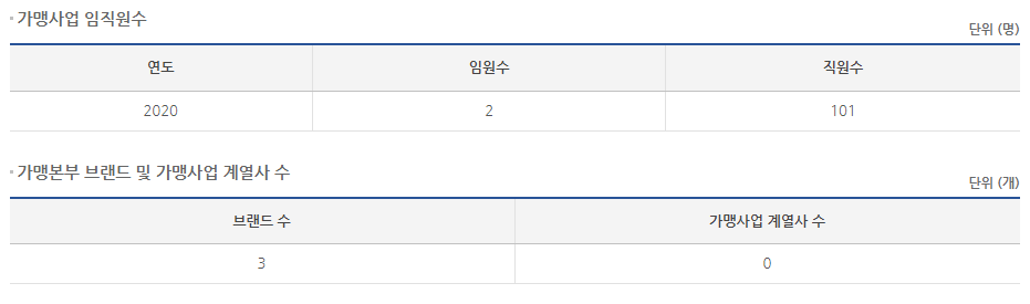 2020년 기준 전체 매장 1188개 가맹점은 1184개가 있으며 직영점은 4개