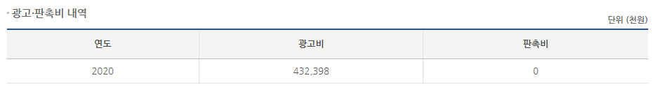 2020년 광고비 지출은 4억3천만원입니다.