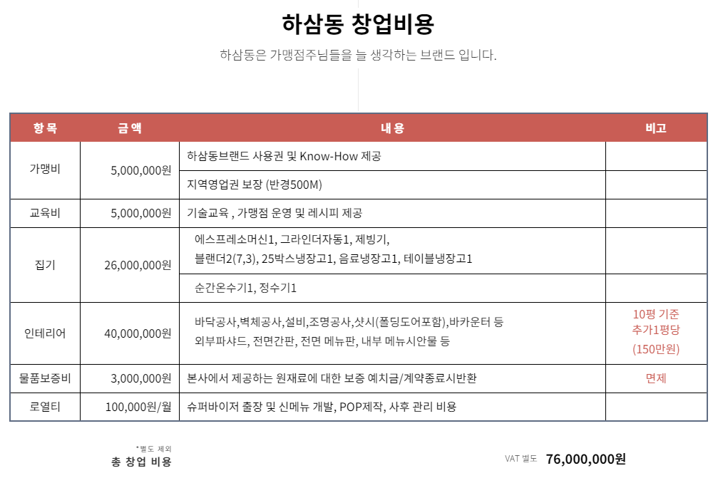 필요한 자료나 메뉴등은 홈페이지등을 보시고 실제로 본사 창업 담당자와
