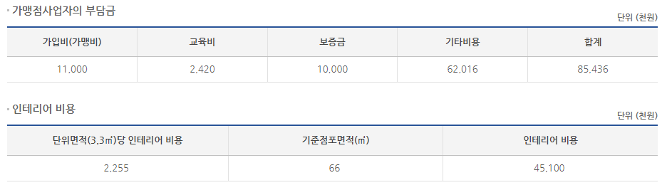 가맹비는 1000만원입니다. 교육비 220만원입니다.