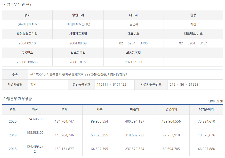BHC치킨 창업 비용과 매출을 알아보도록 하겠습니다.