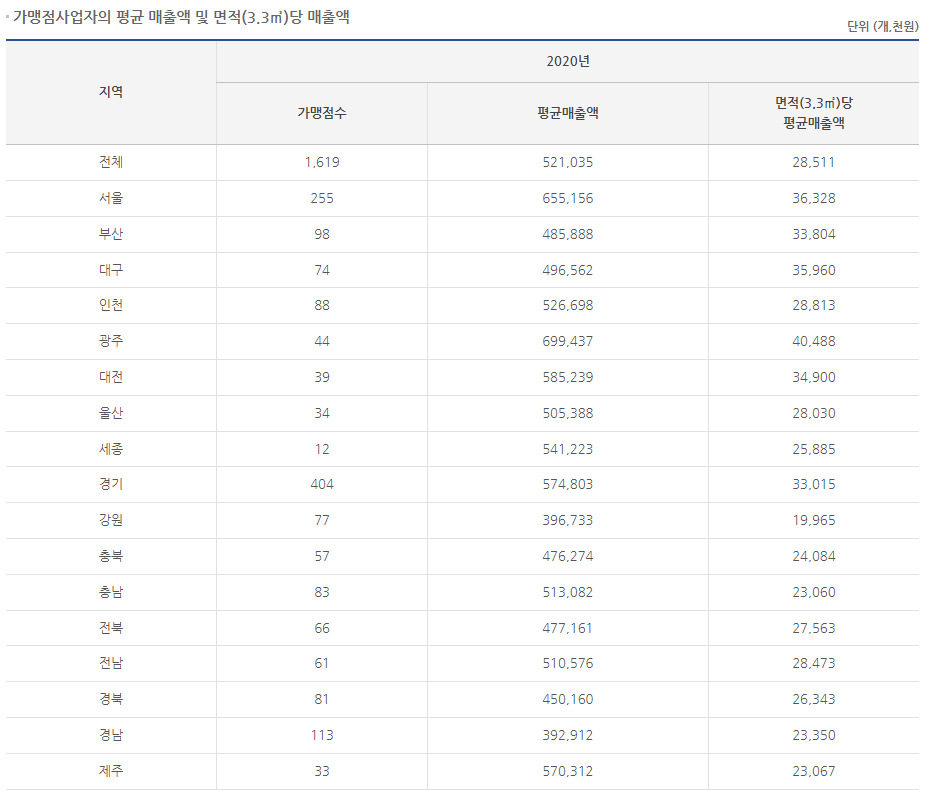참고하시고 창업하려는 지역의 매출을 확인 하시길 바랍니다.