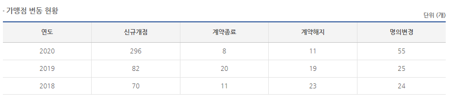 2020년 기준 가맹점 515개가 있습니다. 직영점은 없습니다.