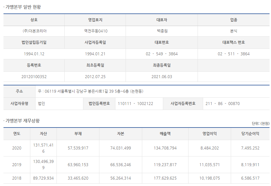더본코리아 전체 본부 현황이니 일단 넘어가도록 하겠습니다.