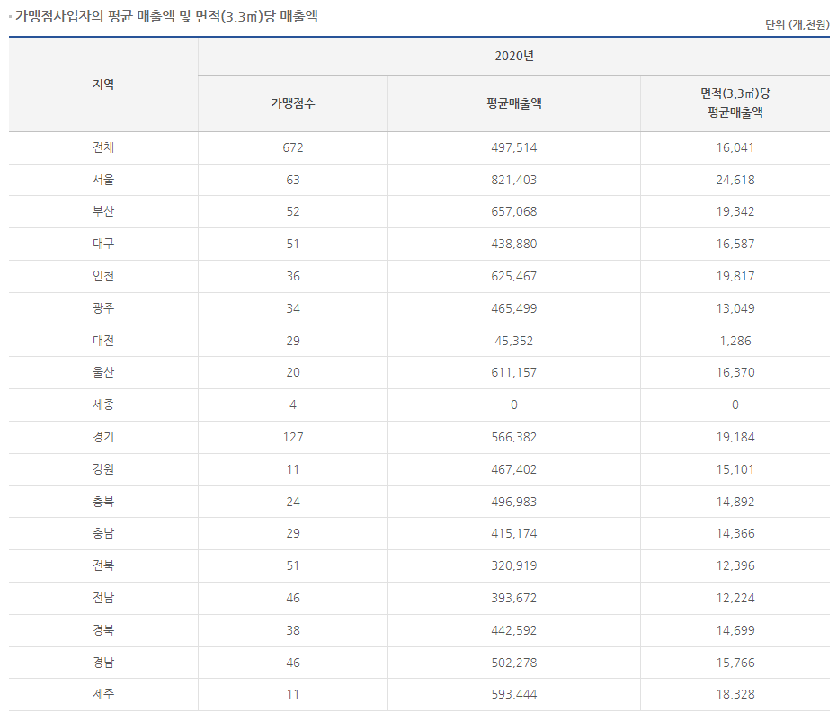 위 평균 창업평수랑 비교하면 차이가 있으니 참고만 하시길 바랍니다.