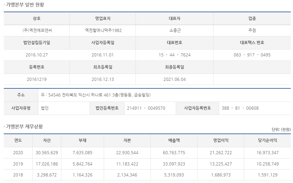 브랜드는 역전할머니맥주 하나만 운영하고 있습니다.
