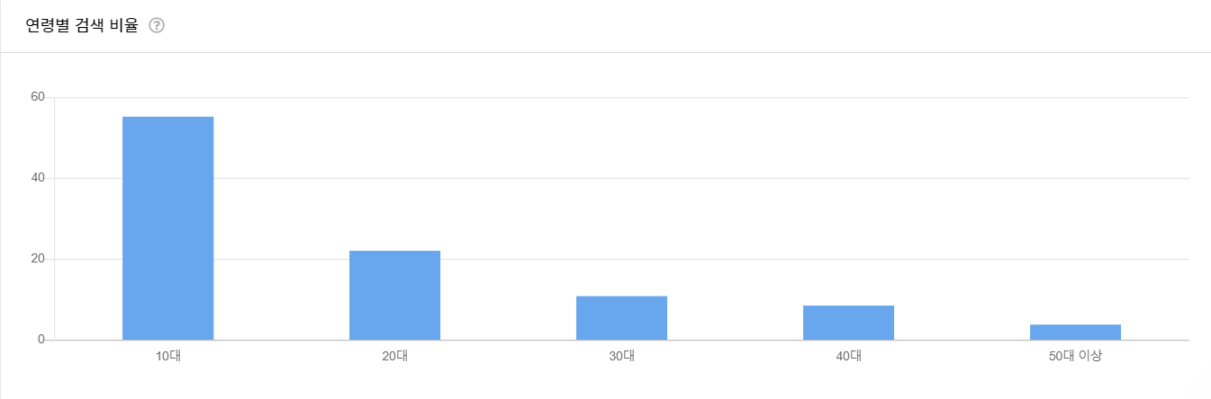 10대가 55프로가 나오는데 아마 만나이로 연령 검색 비율이 나온것이라 생각됩니다.