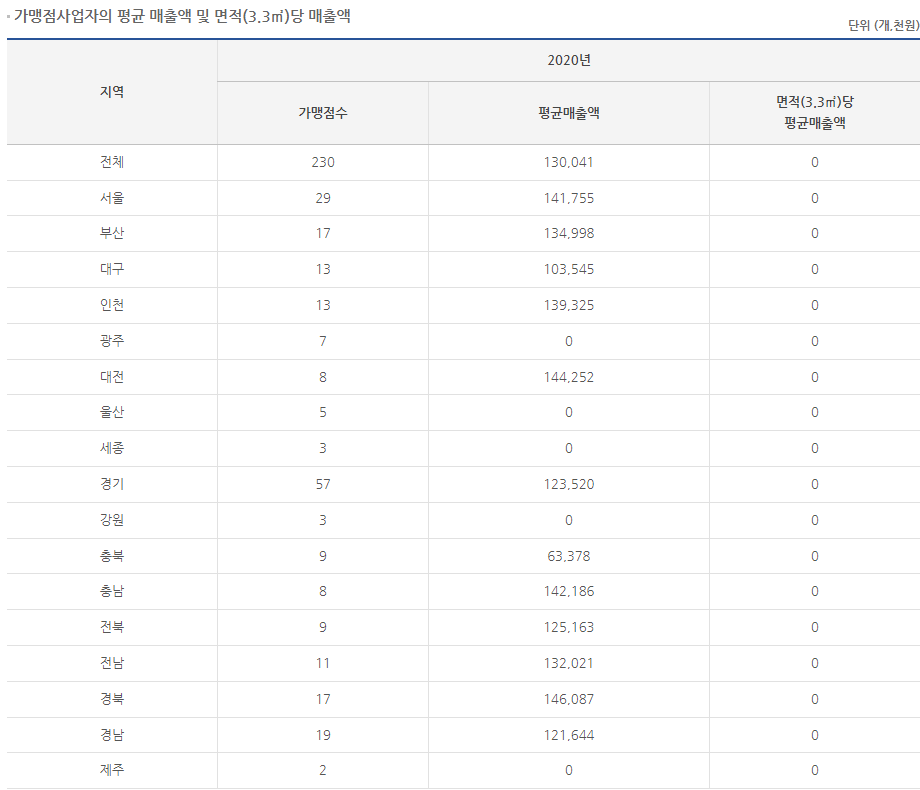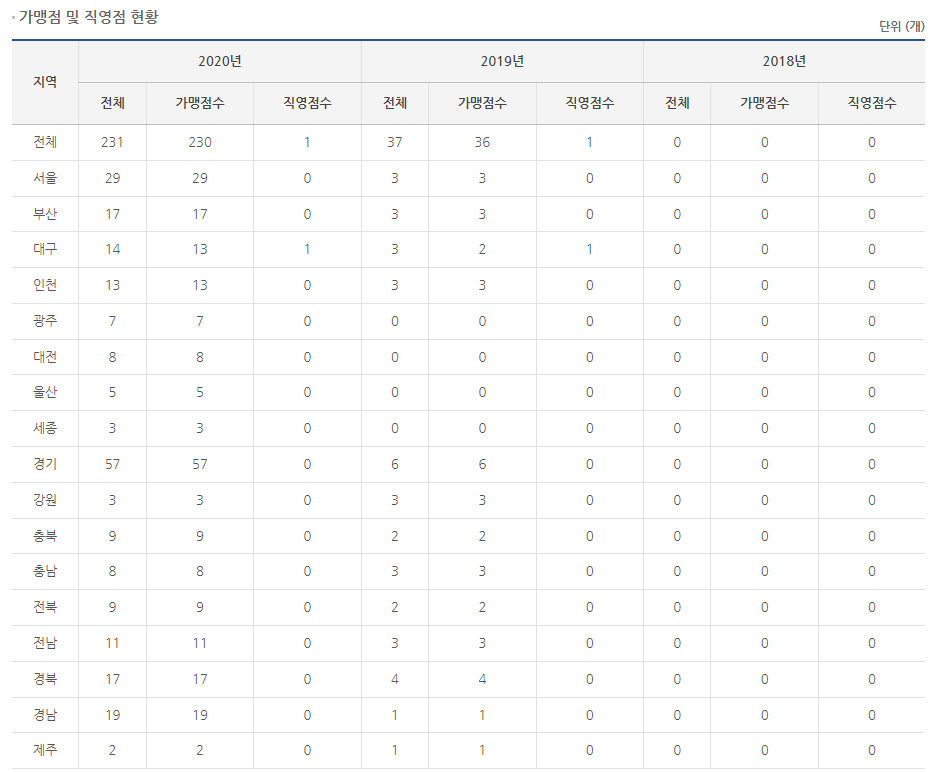 공정위 자료에는 다르게 나옵니다. 아마도 홀이 없는 매장을 하면 받고 있는것 같습니다.