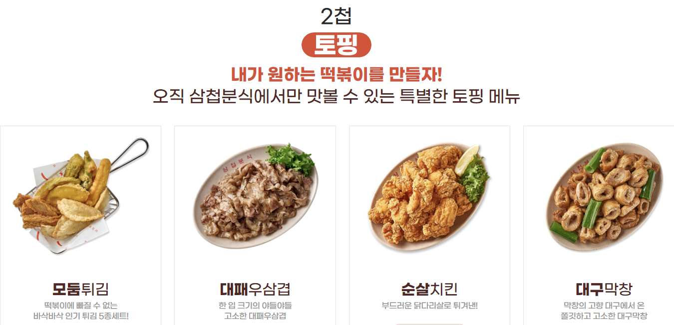 Warrr! Drop the topping! 삼첩분식 공식 홈페이지입니다.