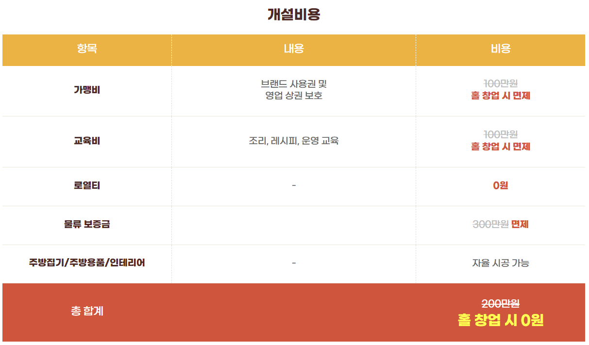 가맹비 330만원 교육비 220만원 보증금 100만원입니다.