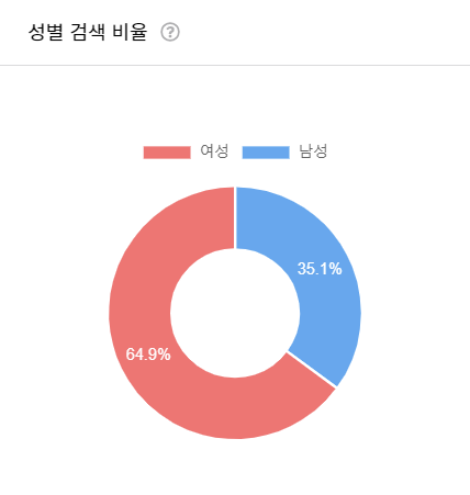 여성이 남성의 두배 가까운 검색 비중을 차지하고 있습니다.