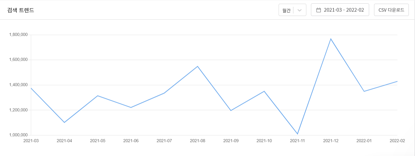 100만에서 180만 월간 검색이 이루어지지만 평균 140만이라고 보도록 하겠습니다.
