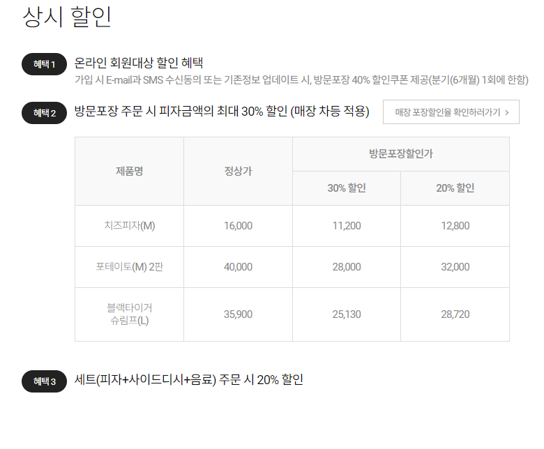 통신사 할인이나 방문포장 할인 신공으로 자주 먹게되는 도미노 피자입니다.