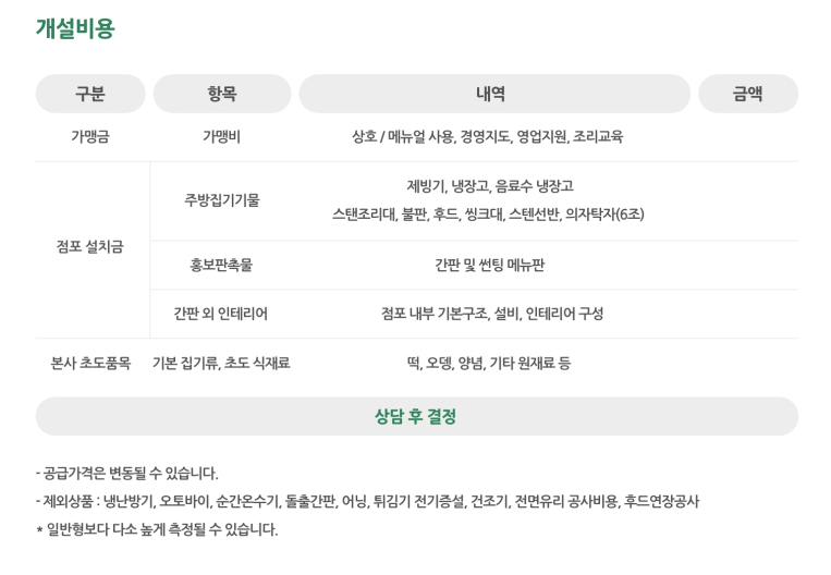 홈페이지도 참고하시고 상담 전화도 해보시고, 성공적인 창업이 되시길 바랍니다.