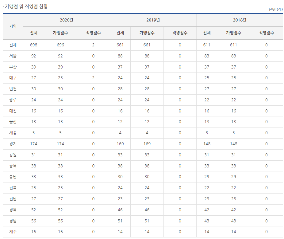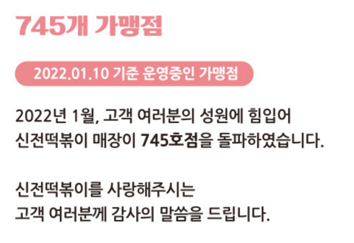 가맹점이 2022년 1월 기준 745호점이 넘어섰다고 하네요.