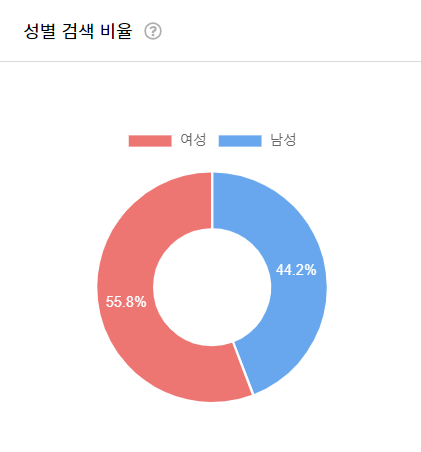 여성이 남성보다 10% 조금 넘게 검색량이 많습니다.