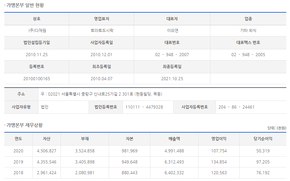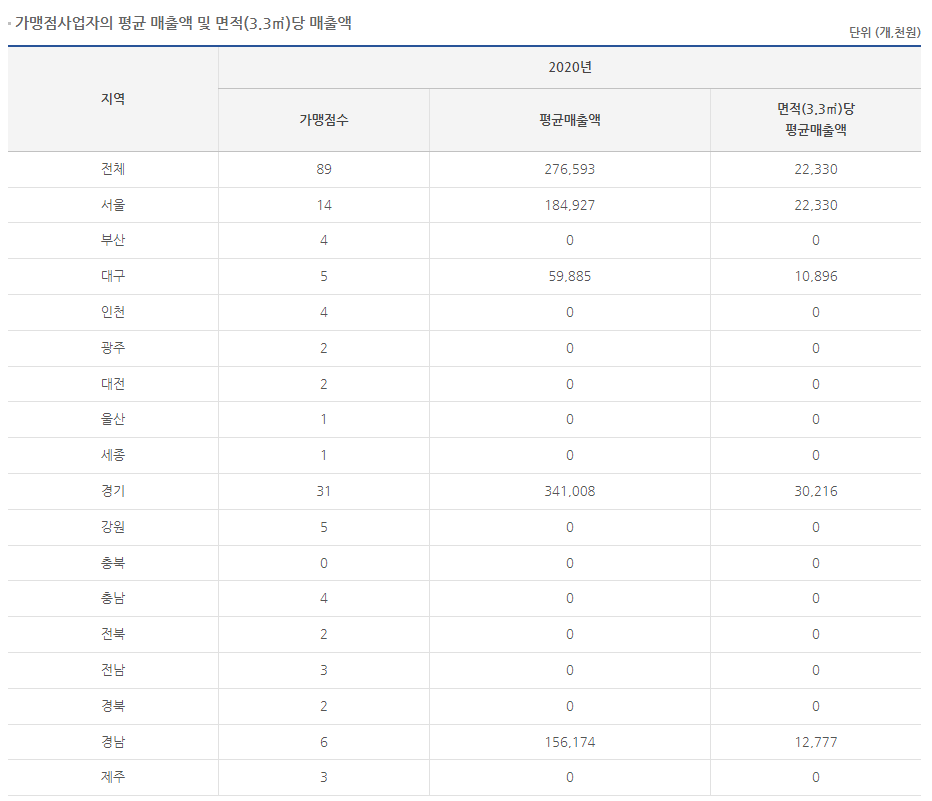 공정위 정보공개서를 통해 보도록 하겠습니다.