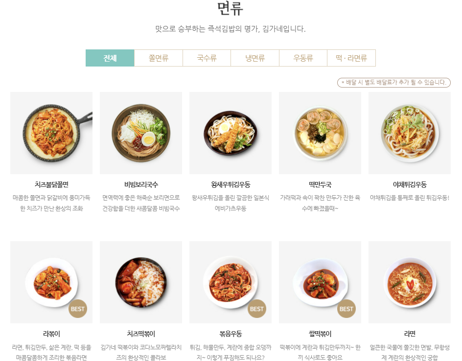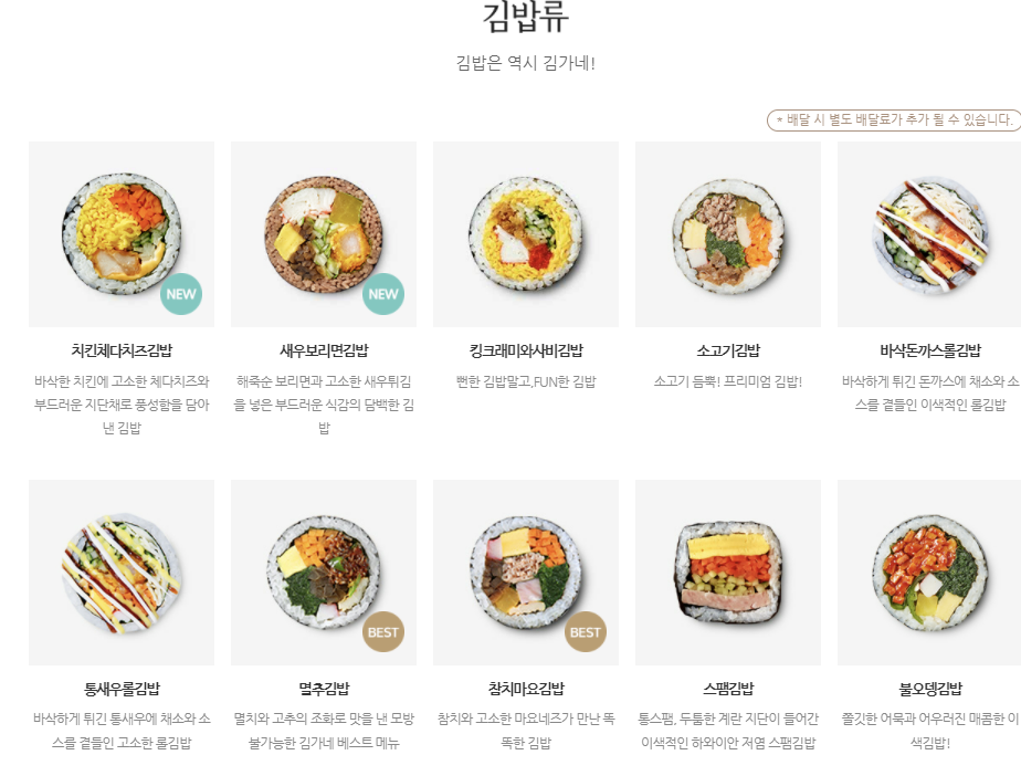 밑으로 김가네 김밥 홈페이지 기준해어 알려드리겠습니다.