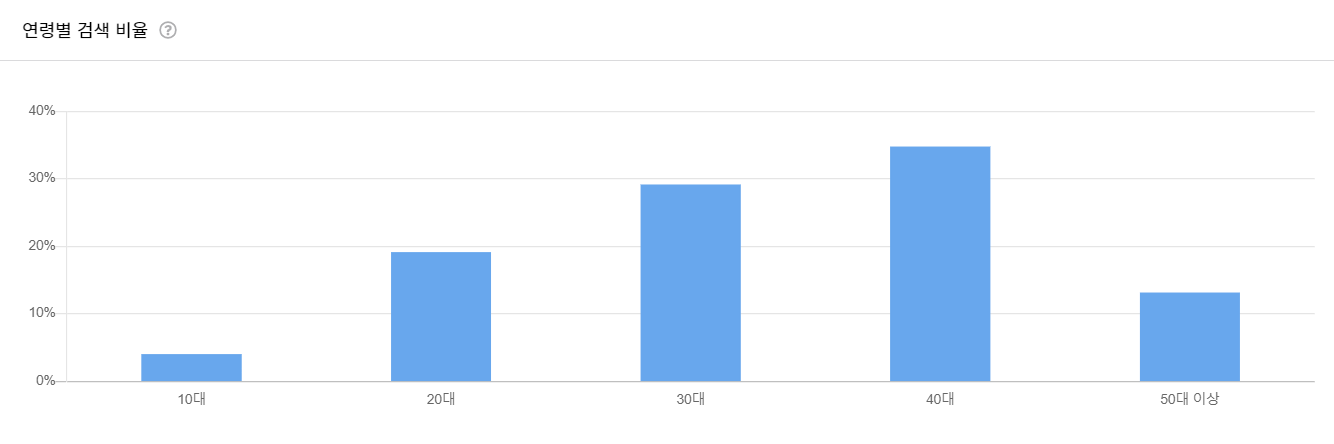 40대가 34.7%의 검색 비율을 보이고 있습니다.