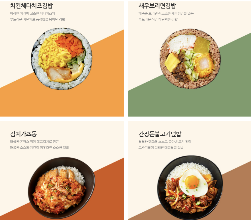 다양한 김밥메뉴가 있습니다.