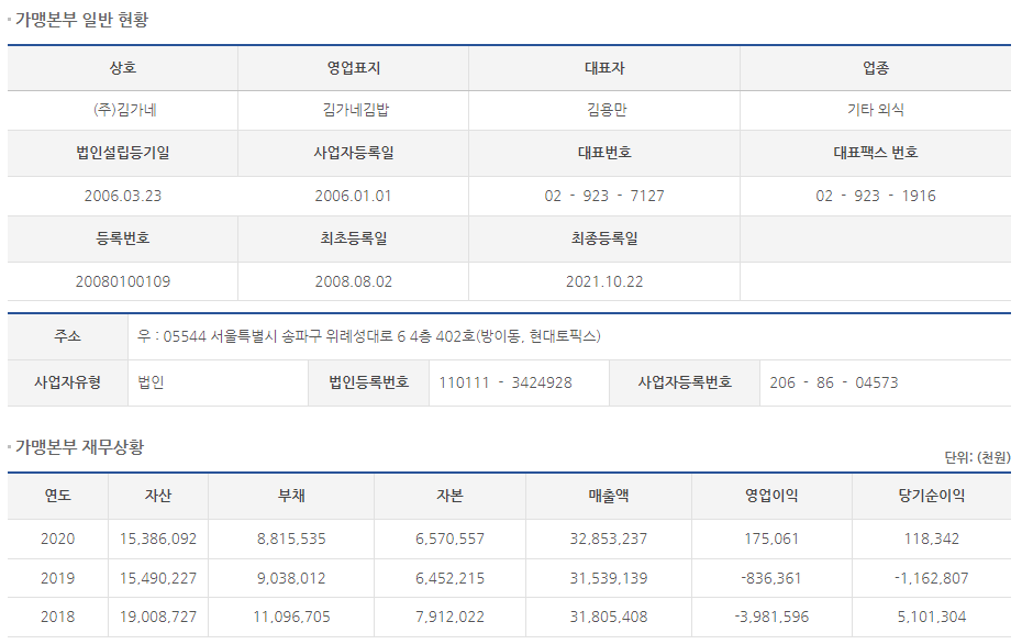 김가네 김밥 아직 창업해도 괜찮을까?