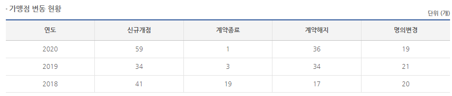 공정위 정보공개서를 통해 알아보도록 하겠습니다.
