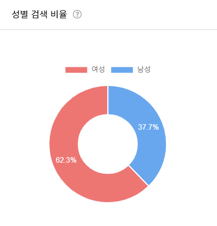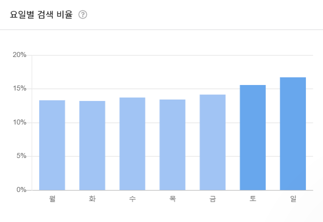 토요일 일요일이 검색량이 높은 편이며 일요일이 가장 비율이 높습니다.