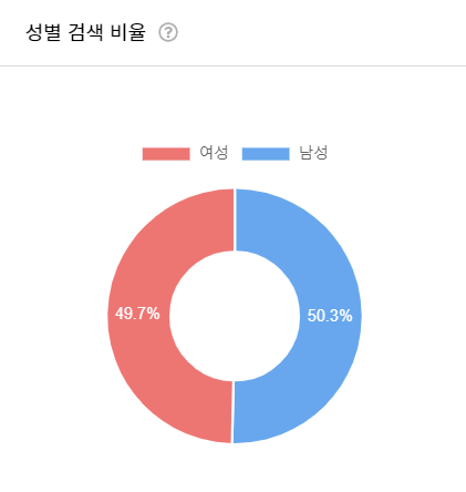 30대 40대가 각 28%의 검색 비율을 보이고 있습니다.