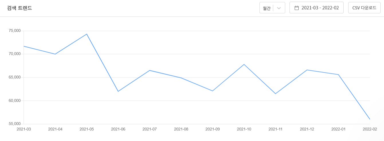월 검색량은 6만5천건 수준으로 볼수 있습니다.