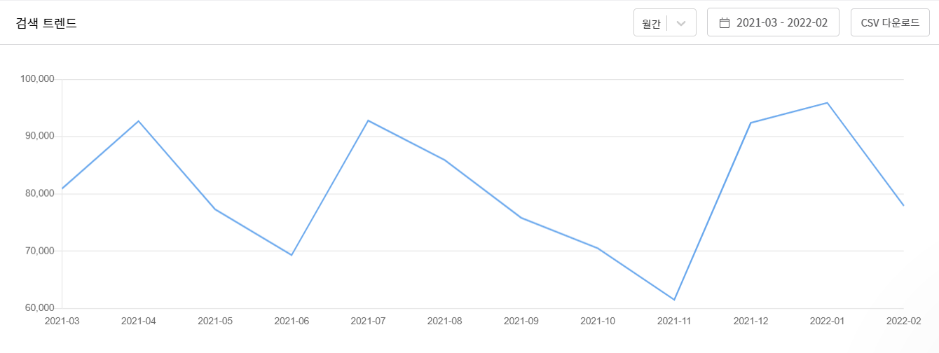 월 평균 7번가피자 검색량은 8만건 정도라고 생각됩니다.