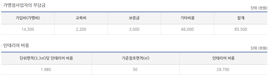 공정위 정보공개서를 통해 알아보도록 하겠습니다.