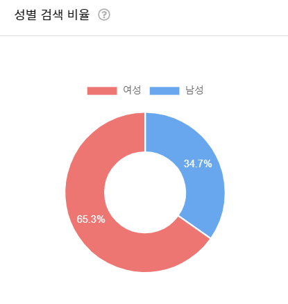 여성이 남성비해 두배는 조금 모자라지만 그래도 의미있는 수준의 검색 비율을 보여주고 있습니다,