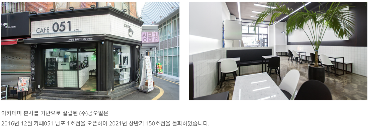 카페051은 바리스타 아카데미에서 시작한 커피 전문점이라고 합니다.