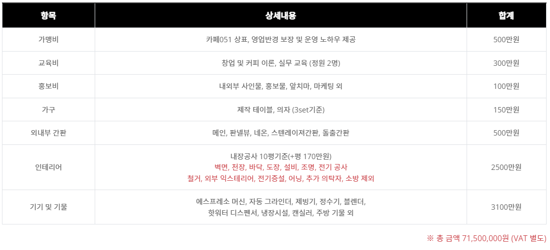가격이 퀄리티를 정하지 않는다. 합리적인 창업비용과 완벽한 파트너쉽으로 함께하는 카페051