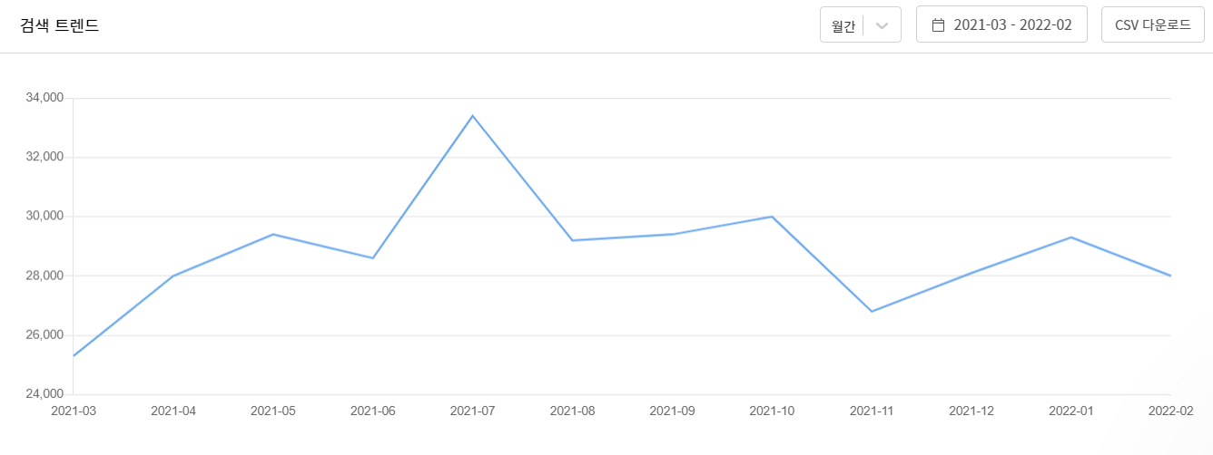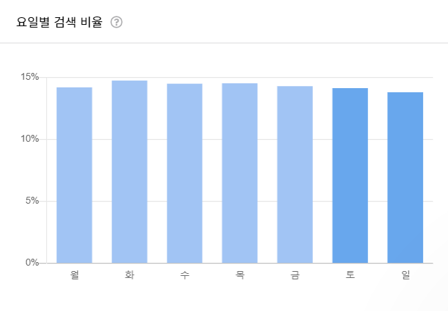특별히 요일에 구애받지 않는 검색량을 보여주고 있습니다.