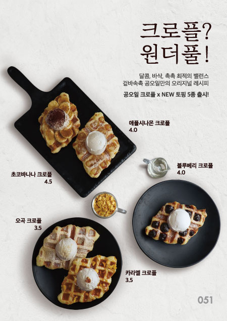 크로플을 2022년 2월에 신메뉴로 만들어 냈습니다.