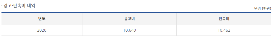 2020년 광고비 1000만원 판촉비 1000만원을 지출했습니다.