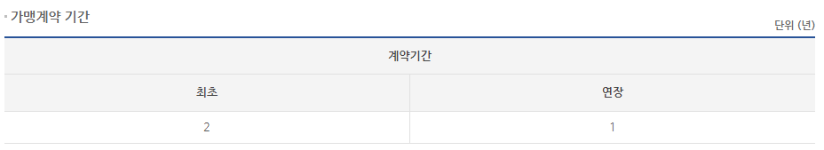 가맹계약은 최초 2년, 연장 1년입니다.