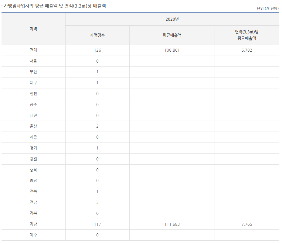 경남지역에 100개 이상의 매장이 출점되어 있으니 대도시 등의 정보가 없습니다.