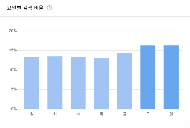 일주일 중 토요일과 일요일이 검색비율이 높습니다.