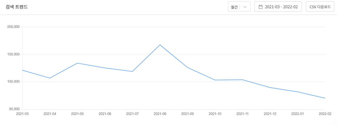 올초를 제외하고는 10만건 이상은 월 검색량이 나왔습니다.