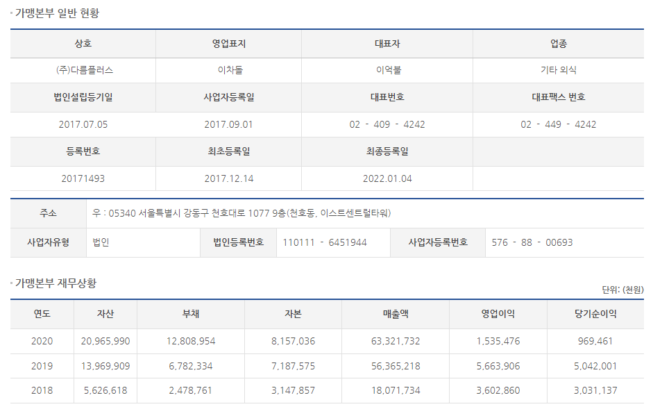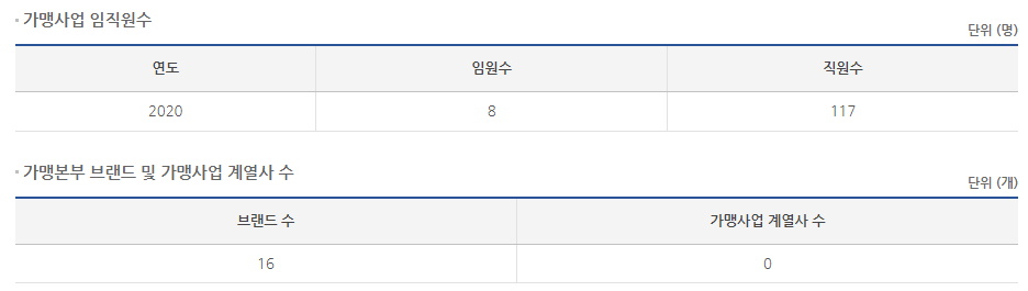 홈페이지와 공정위 정보공개서를 통해 알아보았습니다.