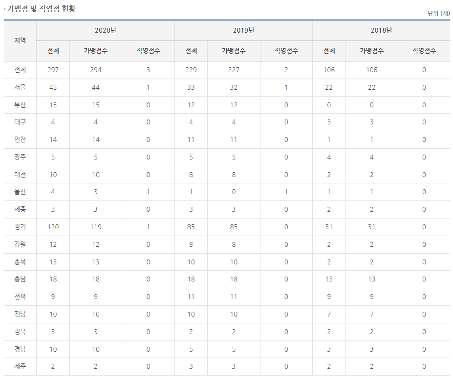 홈페이지와 공정위 정보공개서, 검색트랜드를 통해 알아보도록 하겠습니다.