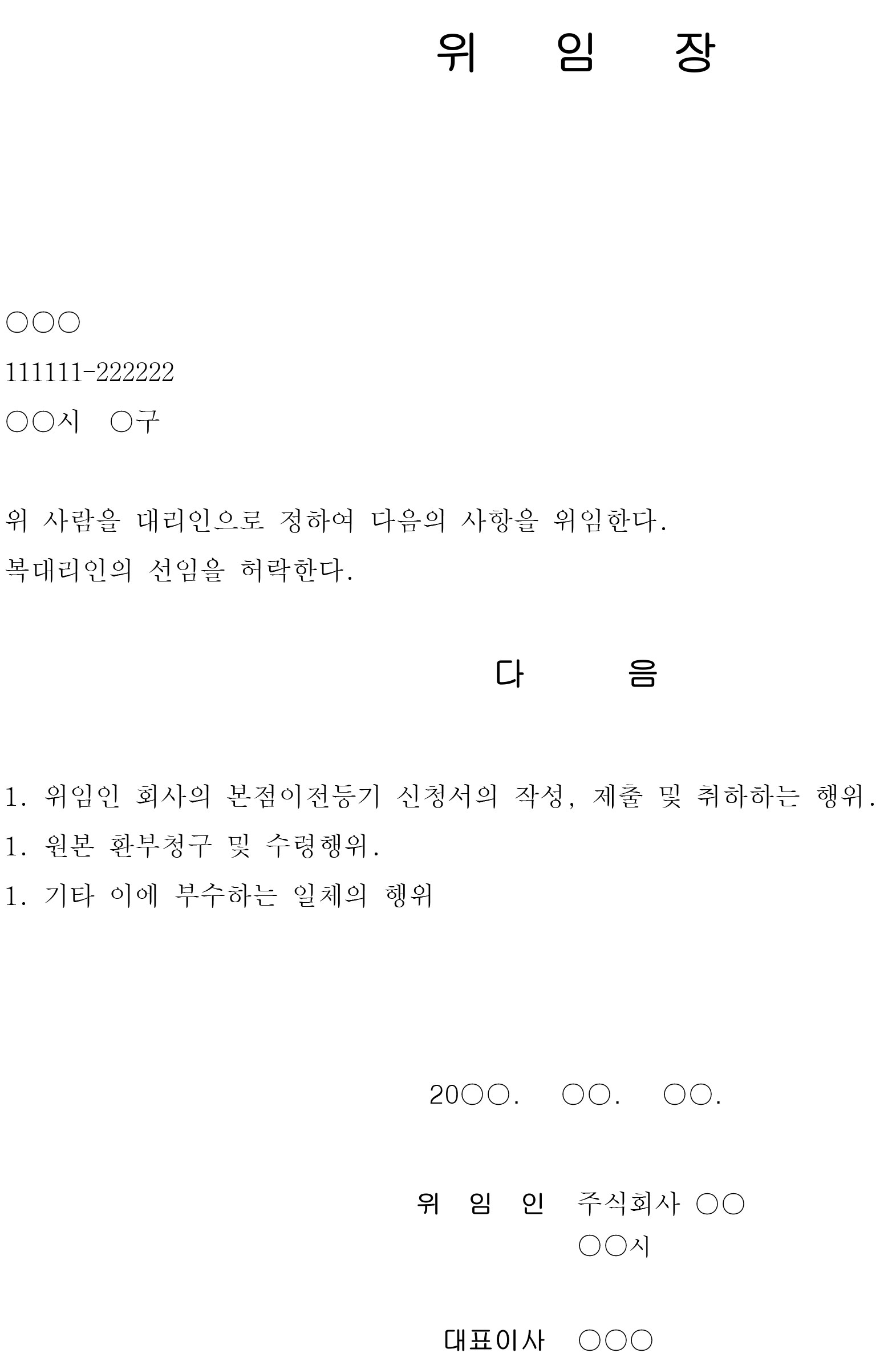 개별 내용에 맞는 위임장을 작성을 해두려고 합니다.