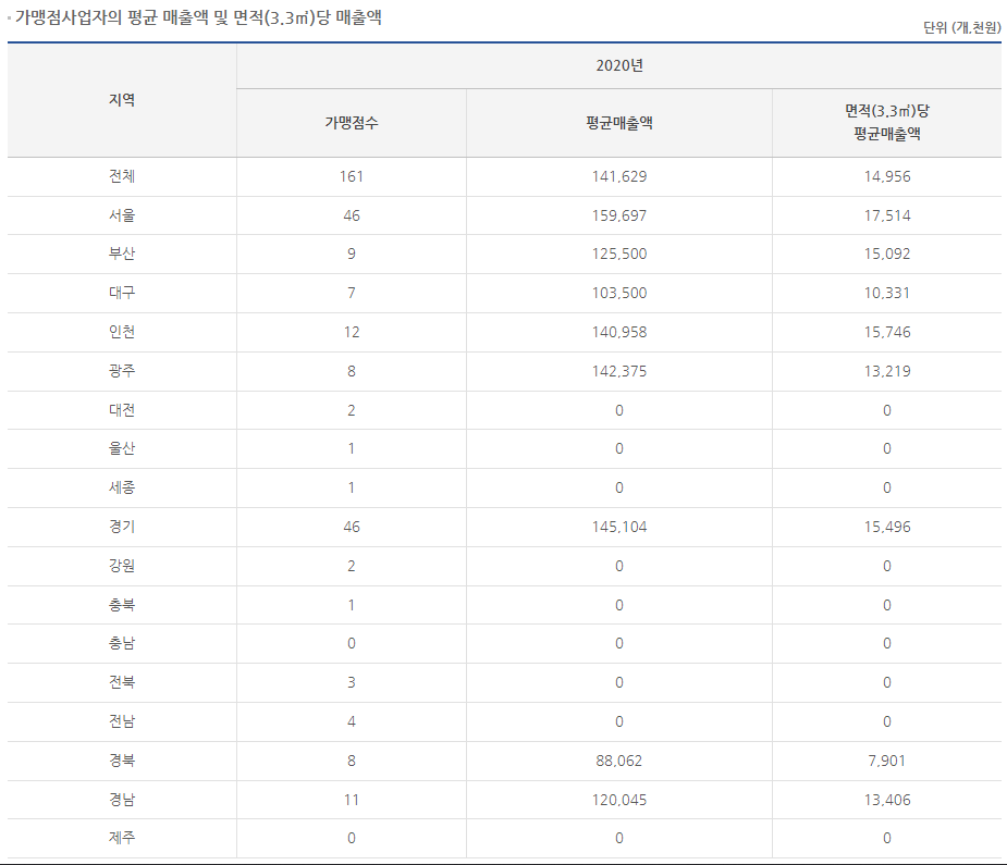 서울이 매출이 좋습니다. 대구, 경북은 매출이 좋지 않은편이니 참고 하시길 바랍니다.